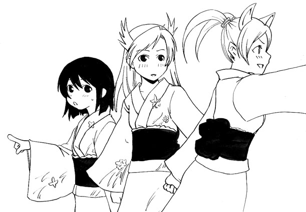 昨日の99魔でエンドレス討伐PTに合流するため現地に向かう浴衣三人娘。